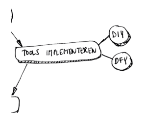 In dit plaatje zie je een vereenvoudigde weergave van de hele keten: vanuit de strategie Tools Selecteren, Implementeren en Beheren. Zowel implementeren als beheren kan je zelf doen (DIY) of laten doen (DFY).