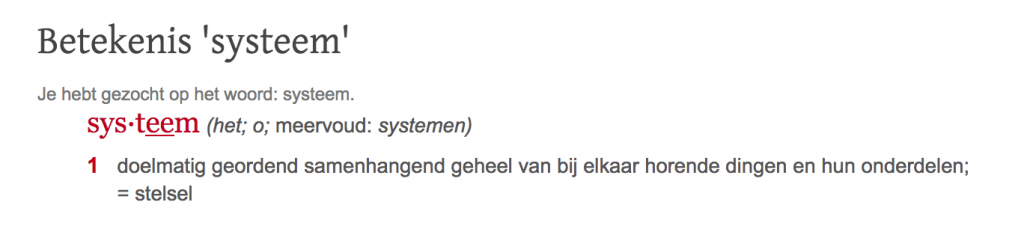 Systematiseren van je bedrijf – systemen implementeren – betekent dat je een aantal systemen gaat inrichten. Dat klinkt heel technisch, maar kijk eens naar de betekenis van systeem in de van Dale: