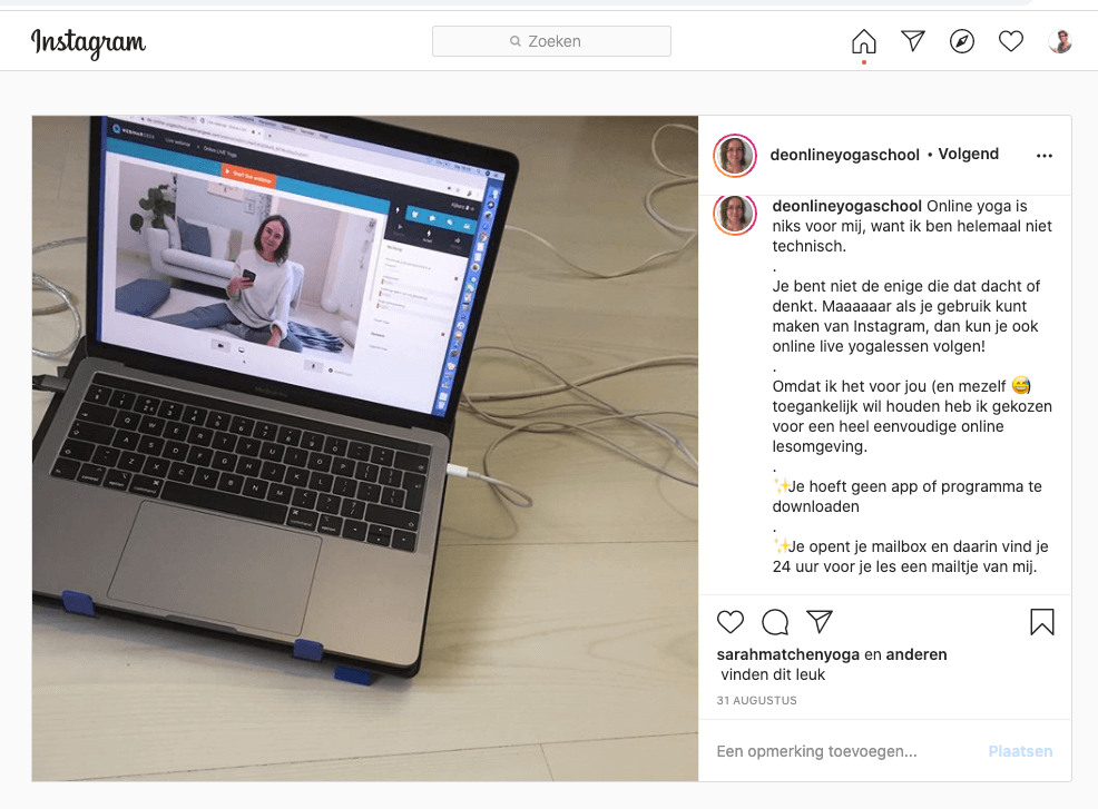 Een mooi voorbeeld van online lesgeven is Astrid van Rens met haar Online Yogaschool.